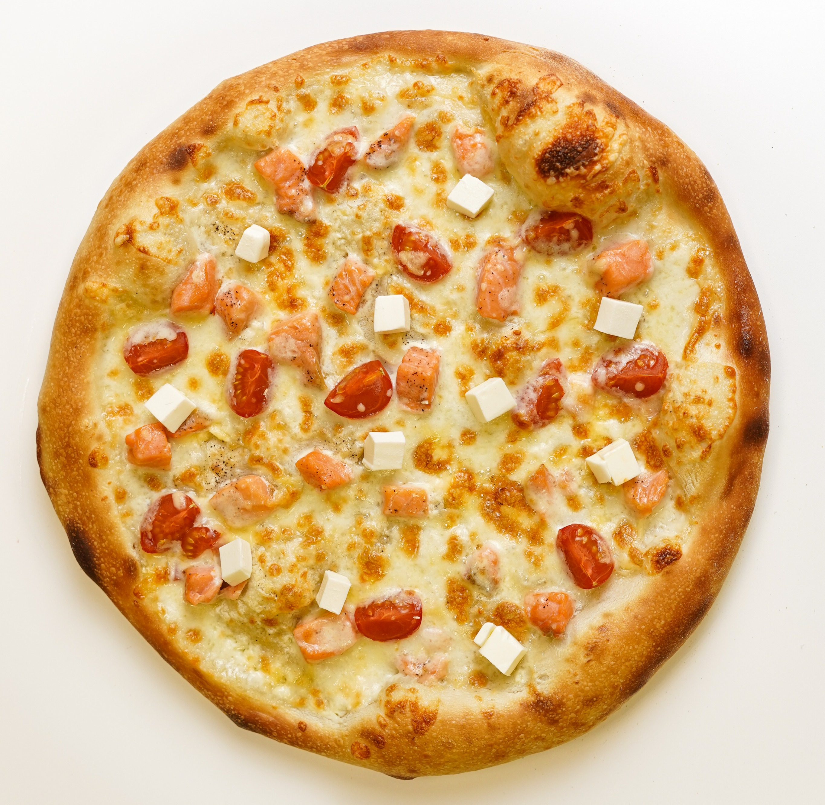 лосось, фета, черри, гауда, моцарелла, черный перец, сливочный соус,  635±30 гр.