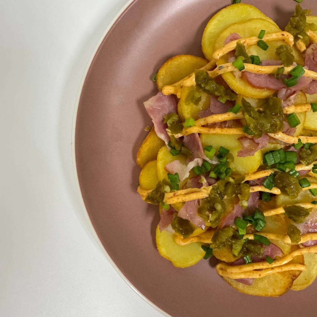 картофель, бекон, халапеньо, спайси соус, зеленый лук